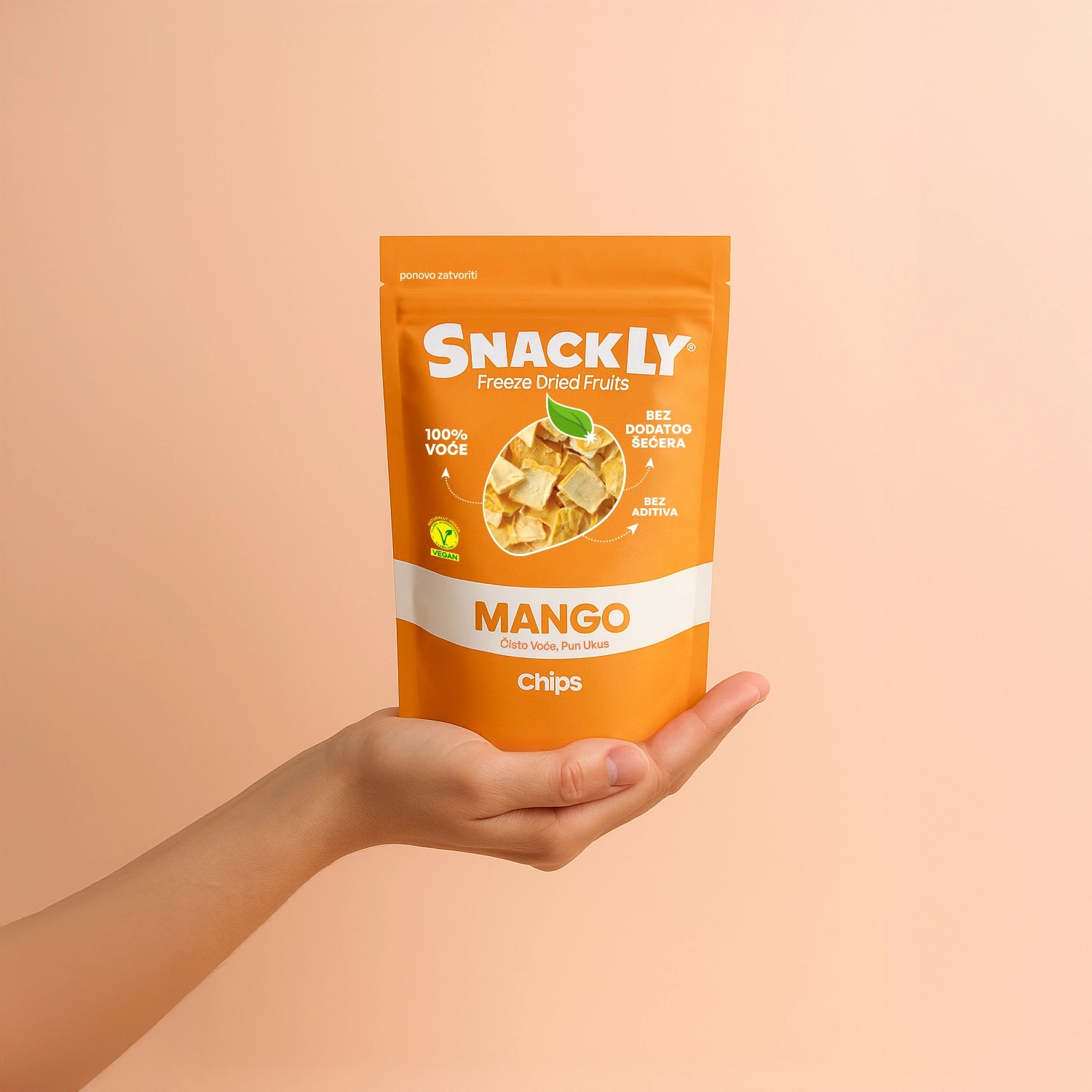 Da bi mango ostao svež i hrskav što duže, važno je da ga čuvate na suvom i tamnom mestu, dalje od vlage, sunčeve svetlosti i – obavezno – van frižidera. Najbolje je da ostane u originalnom Snackly pakovanju koje ga štiti i čuva njegovu hrskavost.